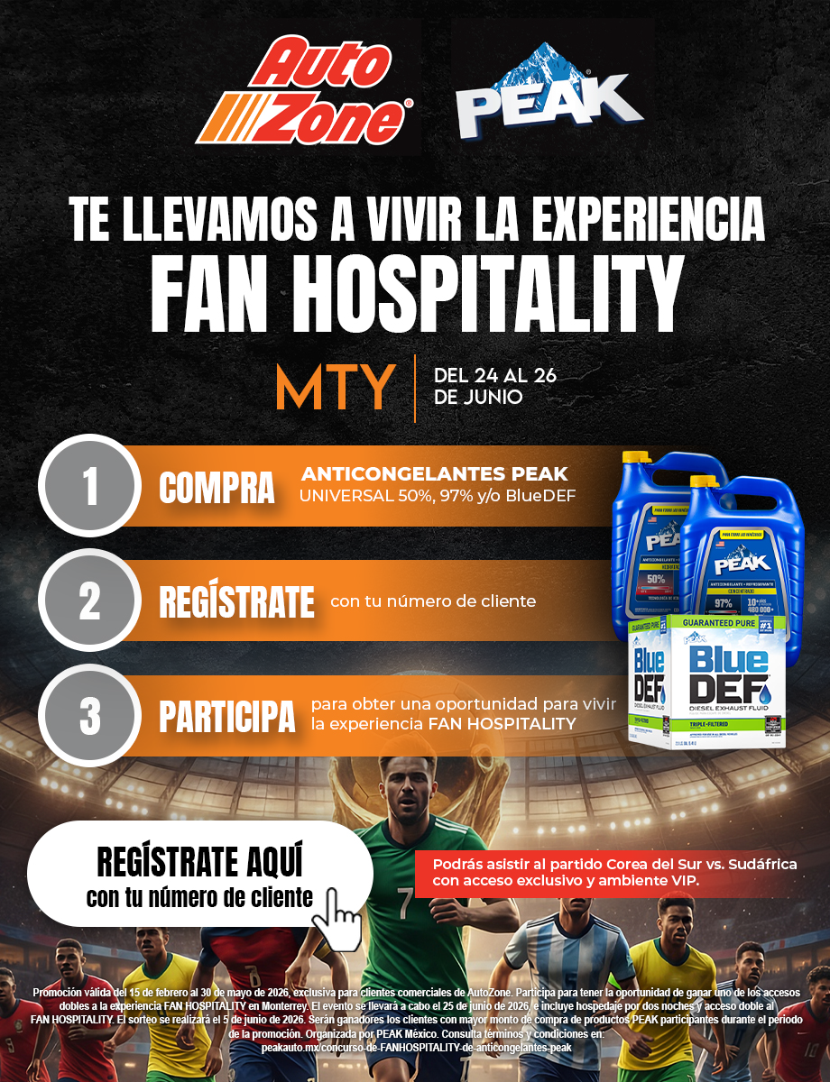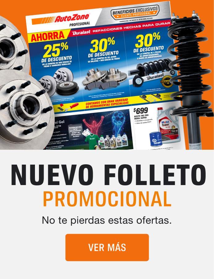 Esta página web utiliza cookies que son necesarias para el funcionamiento de la misma. Los sitios web pueden utilizar productos y servicios propios y de terceros para recopilar estadísticas de tráfico a través de cookies, píxeles, etiquetas y web beacons. Una cookie es una pequeña porción de información almacenada en su dispositivo que ayuda a los sitios web y a múltiples servidores a reconocerlo. AutoZone y sus proveedores de servicios externos también pueden utilizar otras tecnologías de seguimiento, como píxeles o archivos GIF transparentes, para la gestión de aplicaciones y sitios web y el seguimiento de usuarios.